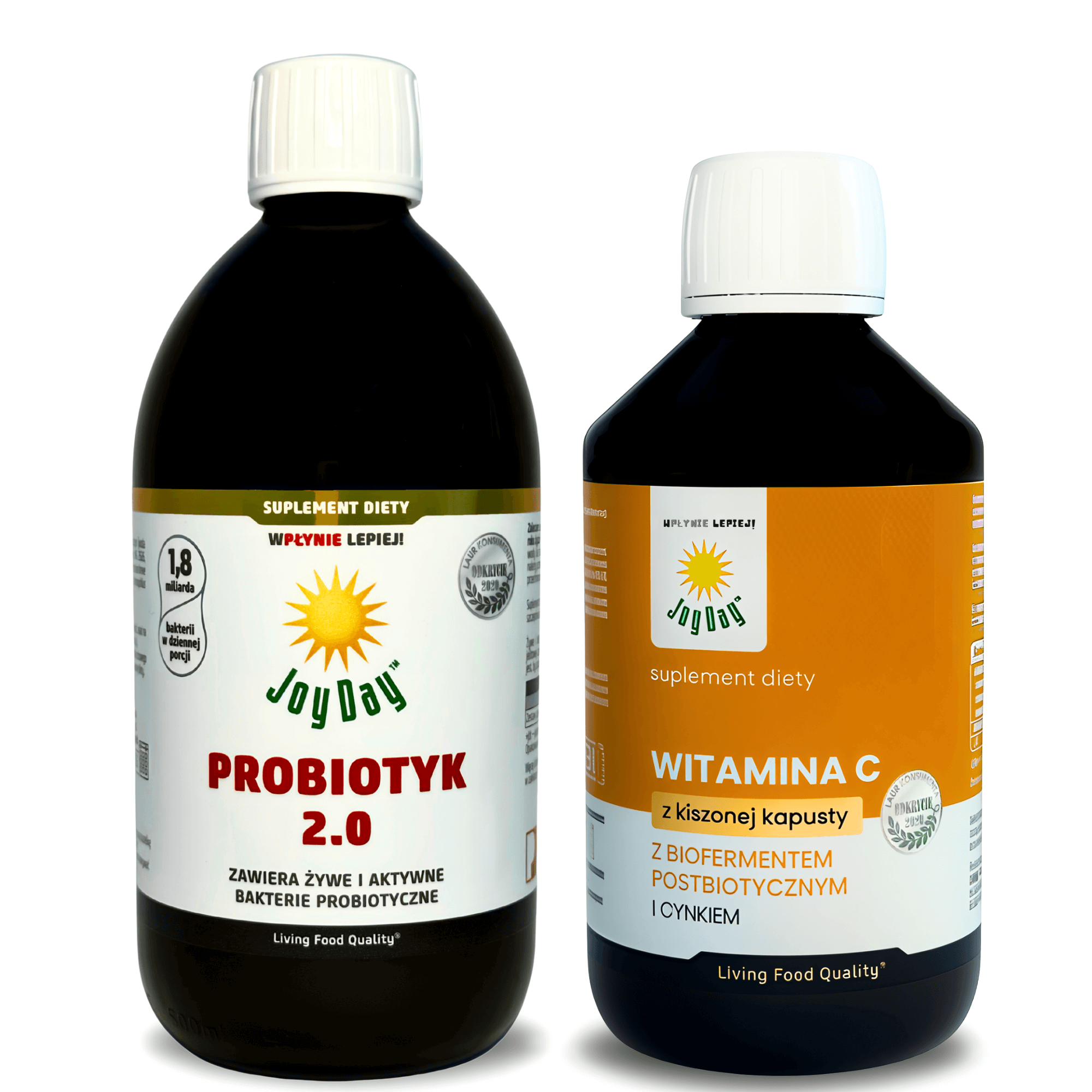 • Witamina C Joy Day – naturalna witamina C z kapusty kiszonej, wzbogacona cynkiem i biofermentem z owoców, opracowana z myślą o wysokiej przyswajalności.